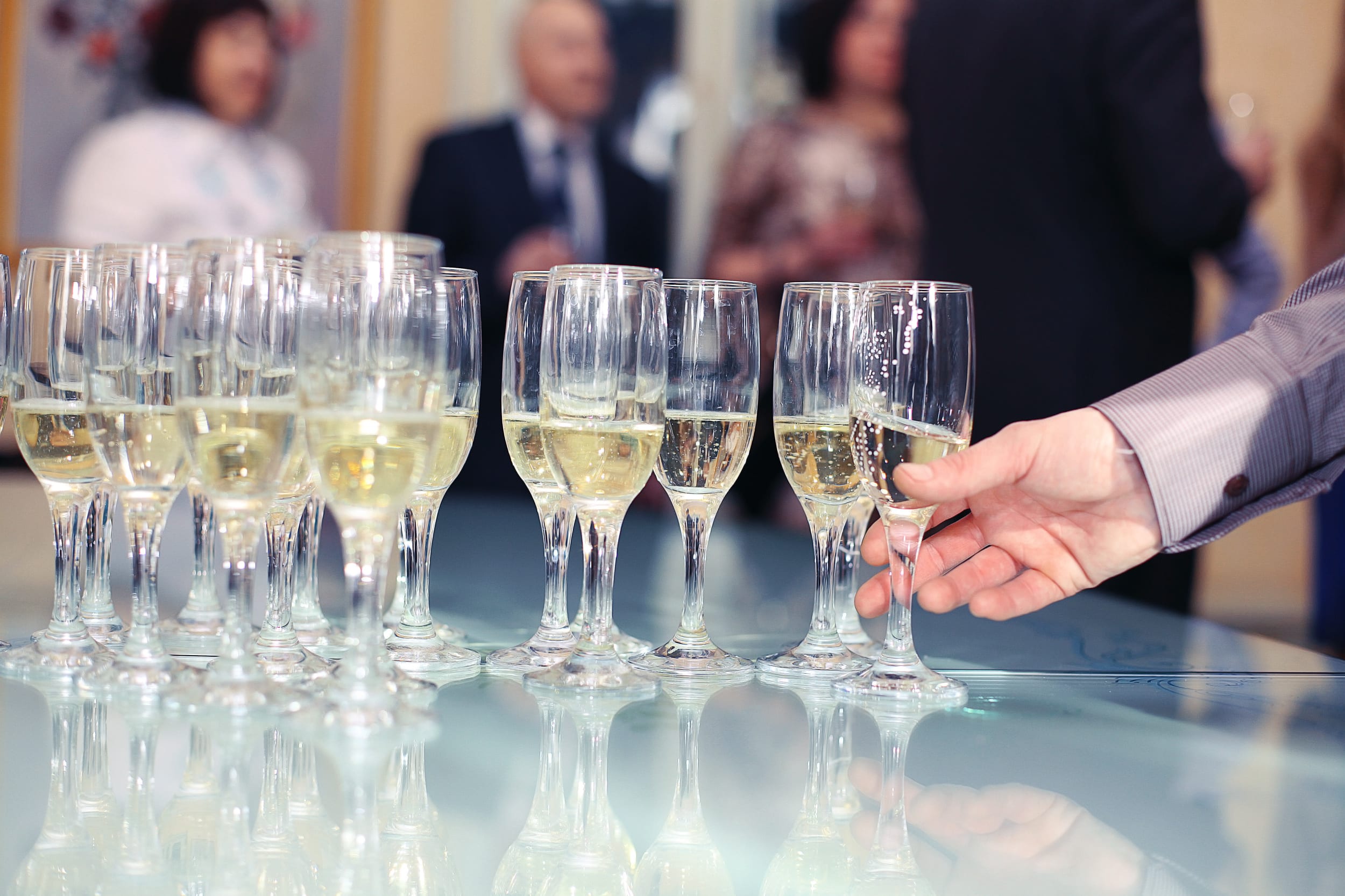 glasses with champagne alcohol cocktail banquet