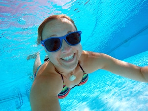 junge Frau taucht im Pool